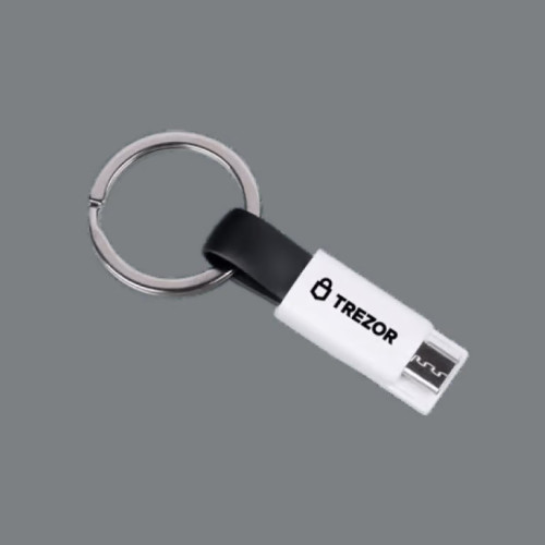 he Magnetic Micro-USB to USB-A Keyring charging and sync cable for Trezor Model One connects your wallet’s micro-USB port to another device’s USB-A port for secure access to your Bitcoins and other crypto assets. Always be ready to connect your Trezor hardware wallet with this extra small, tangle-free cable which is only 1.5 inches (3.8 centimeters) long and conveniently clips onto your keyring with a strong magnetic hold. LENGTH: 1.5 inches (3.8 centimeters) COMPATIBILITY: Trezor Model One .